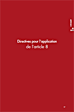 Les directives pour l'application de l'article 8 sont destinées à aider les Parties du traité à remplir leurs obligations au titre de la disposition ci-dessus et visent à traduire et promouvoir les meilleures pratiques et les meilleures normes dans sa mise en œuvre. Soulignant qu' « un engagement politique fort est nécessaire pour prendre des mesures visant à protéger tous les individus contre l’exposition à la fumée du tabac », les directives énoncent quelques principes essentiels devant guider le législateur et le décideur politique.